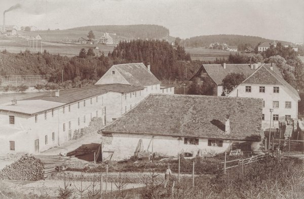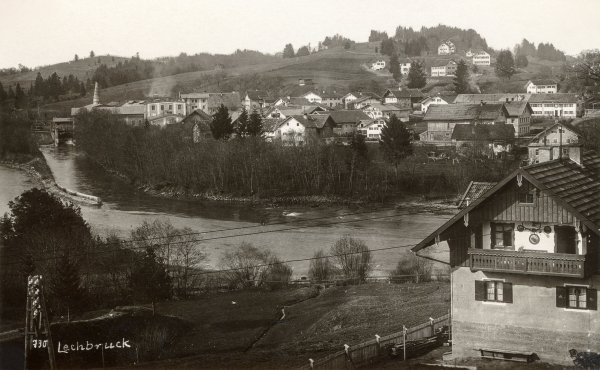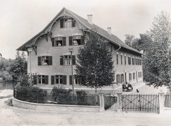 Adolf Böhm betreibt in der Au, die zur Gemeinde Sulzberg gehört und direkt an der Iller liegt, eine Holzschleiferei, die über Transmission mittels Wasserkraft betrieben wird. Möglich macht das ein natürliches Wehr in der Iller. Die Firma A. Böhm & Cie. errichtet 1907 ein Elektrizitätswerk, das die Holzschleiferei betreibt und den Stromüberschuss an die Umgebung sowie 14 Gemeinden zu Beleuchtungszwecken liefert. Für die Stromlieferung heißt die Firma bereits Allgäuer Überlandwerk.