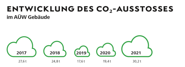 Die Zahl des CO2-Ausstoßes 2021 ernüchtert zunächst, da sie deutlich höhere Emissionen meldet als in den Vorjahren. Dies ist darauf zurückzuführen, dass die Arbeits- und Besprechungsräume im Pandemie-Jahr 2021 deutlich häufiger und ausgiebiger gelüftet wurden, als in den Vorjahren. Insofern erzählt der höhere Wert 2021 von der mitunter großen Konkurrenz einzelner Nachhaltigkeitsziele untereinander – in diesem Fall das Ziel, die Gesundheit der Mitarbeitenden zu schützen, mit dem Ziel der ökologischen Nachhaltigkeit, Energie und Emissionen einzusparen.